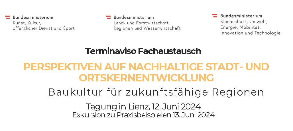 Zukunftsfähige Stadt- und Ortskernentwicklung ist eine gesamtgesellschaftliche Aufgabe, die eng mit Baukultur verbunden ist. Am 12. Juni 2024 findet in Lienz dazu die Fachtagung zum Thema „Perspektiven auf nachhaltige Stadt- und Ortskernentwicklung – Baukultur für zukunftsfähige Regionen“ statt. Gemeinsam mit Vertreter:innen aus Bundesministerien, Landesabteilungen, Gemeinden sowie aus Planung und Praxis sollen aktuelle Herausforderungen und innovative Lösungen für eine nachhaltige Gestaltung von Zentren erörtert werden. Am 13. Juni 2024 wird eine Exkursion zu erfolgreichen Projekten in Kärnten angeboten.