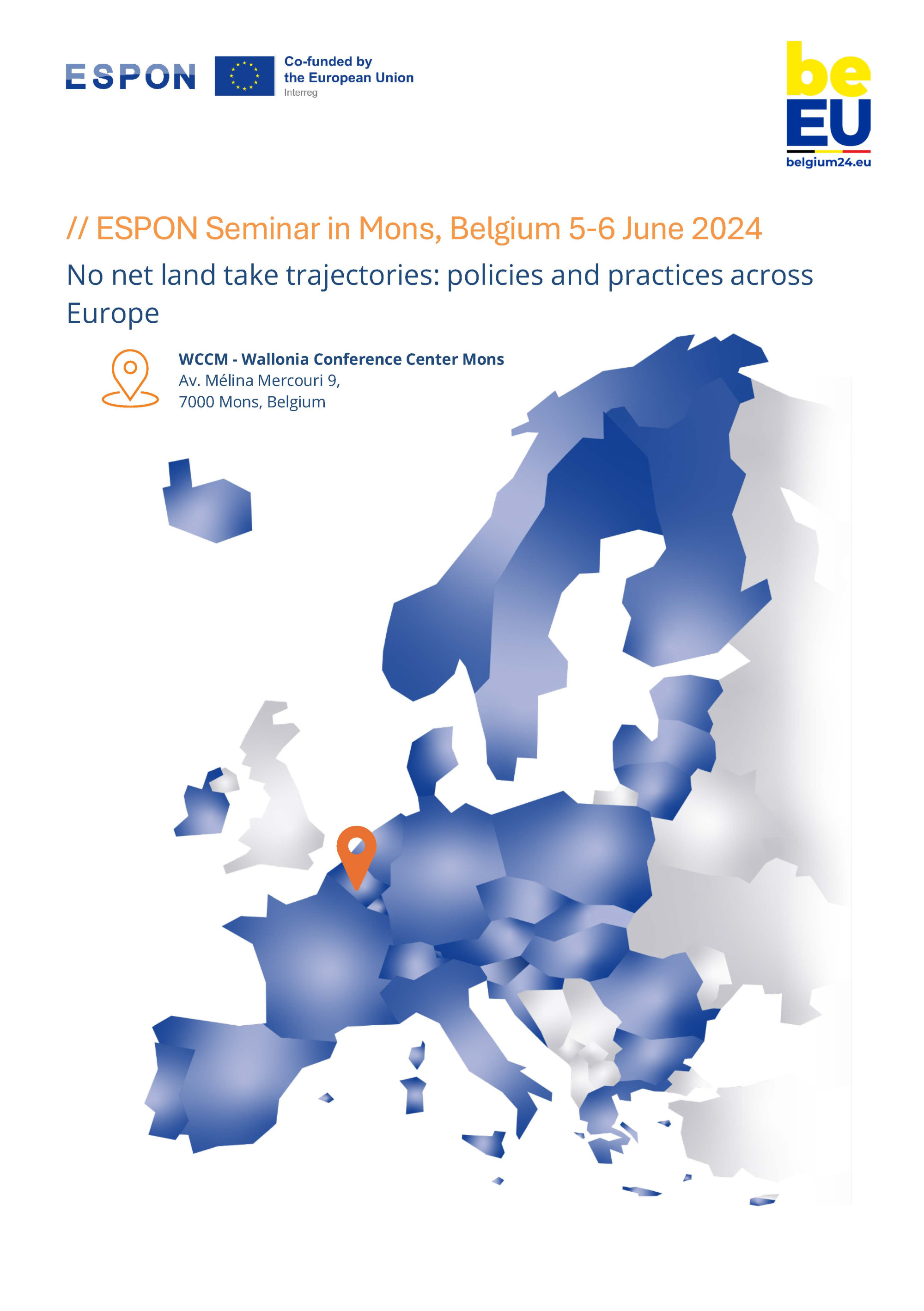 “No net land take trajectories: policies and practices across Europe” ESPON-Seminar von 5.-6. Juni 2024 in Mons, Belgien