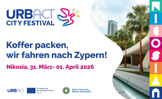 Das nächste URBACT City Festival findet vom 31. März bis zum 1. April 2026 in Nikosia (Zypern) statt! Sie erwartet ein vielfältiges Programm, bei dem die 30 Aktionsplanungsnetzwerke ihre Ergebnisse vorstellen. Holen Sie sich neue Impulse für Ihre Stadt oder Gemeinde und nutzen Sie die Chance, sich europaweit zu vernetzen. Außerdem erfahren Sie dort alles zum letzten Call für URBACT-Netzwerke in dieser Förderperiode! Melden Sie sich gleich an!